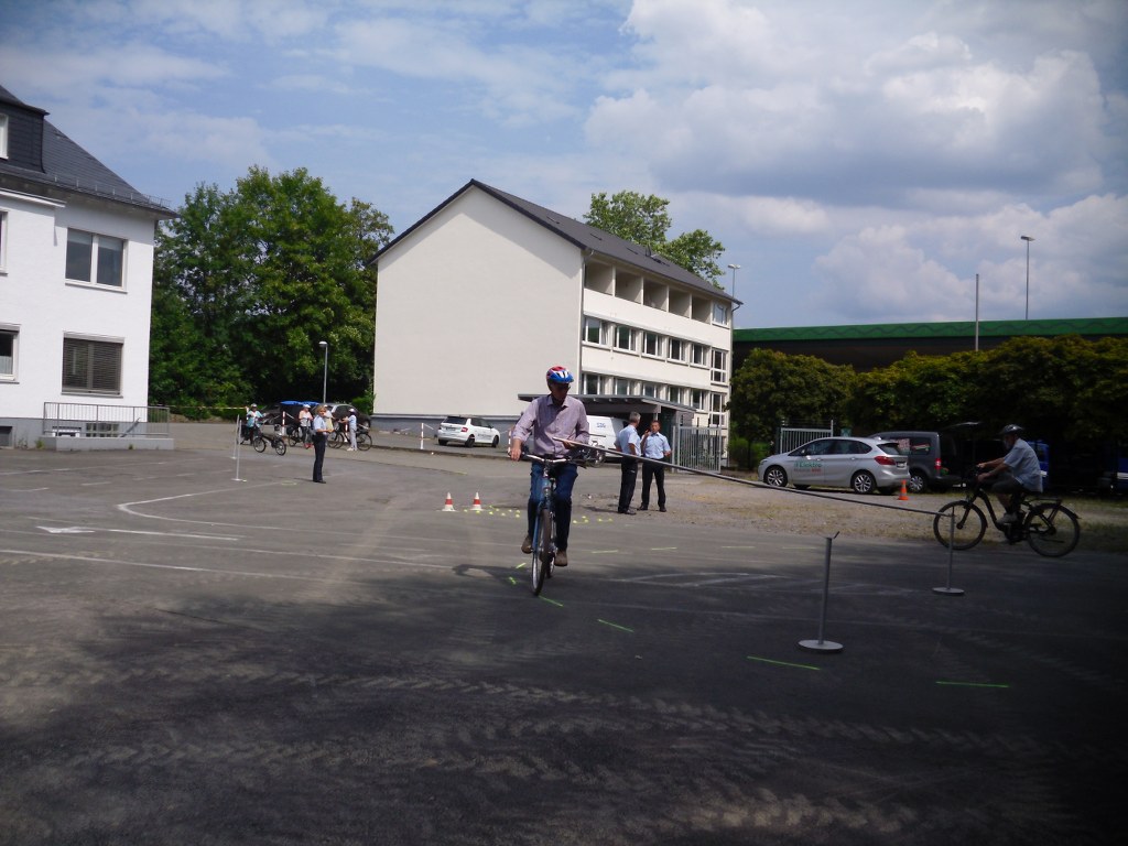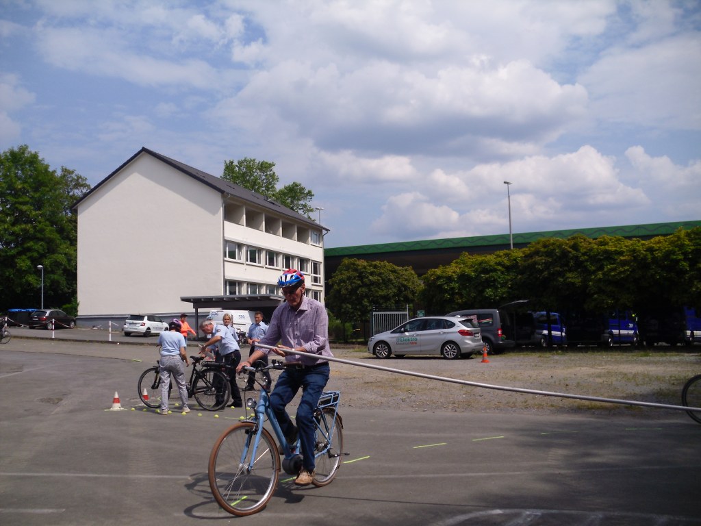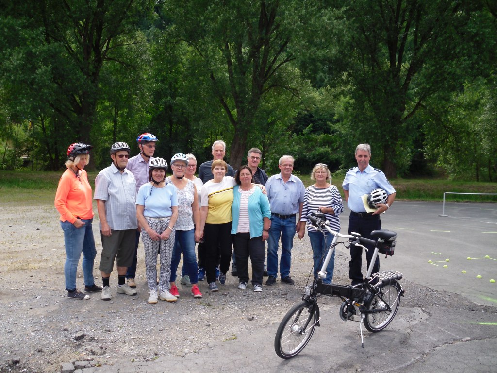 Wir haben uns mit 12 Teilnehmern auf dem Parkplatz des THW Meschede getroffen. Es mussten noch einige Leihräder von der Firma Hegener abgeholt werden. Um 14 Uhr sind die Teilnehmer vom Seniorenbeirat und der Polizei, Herrn Schemme, begrüßt worden. Nach einem kurzen Film über die Gefahren mit dem Fahren eines Pedelecs, ging es nun zu zeigen wie wir mit dem Rad durch einen Parcours fahren. Nach anfänglichen Schwierigkeiten kamen wir mit jeder gefahrenen Runde besser zurecht. Nach ca. 2 Stunden war die Übung zu Ende.